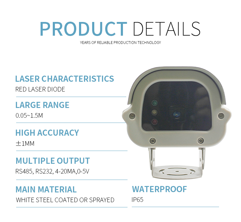 Sensor Láser de Profundidad de Nieve. Detalle del Producto Descripción Detallada El B-01-05-4003 tiene un amplio rango de medición y alta precisión, con una precisión máxima de 1mm. También tiene una súper capacidad anti-interferencia y es ampliamente utilizado en diversos controles industriales como la industria del acero, industria metalúrgica, industria automotriz, industria de impresión, industr. Codigo interno C-002176.