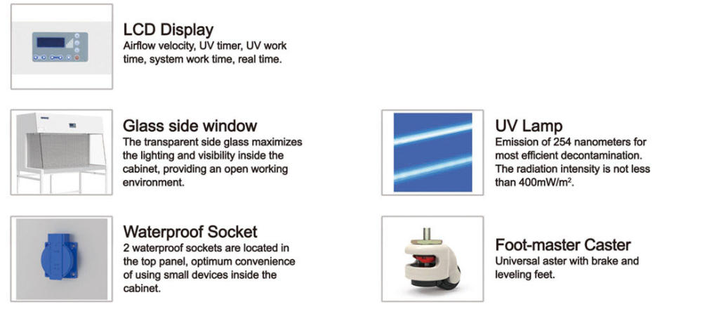 | Filtro HEPA | Uno, 99,995 % de eficiencia a 0,3 μm | Uno, 99,995 % de eficiencia a 0,3 μm | Uno, 99,995 % de eficiencia a 0,3 μm | Uno, 99,995 % de eficiencia a 0,3 μm | Uno, 99,995 % de eficiencia a 0,3 μm |