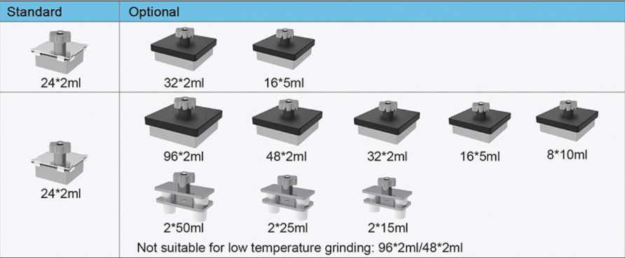 Material de aleación de aluminio Estándar: 24*2 ml Opcional (se puede personalizar): 96*2 ml/48*2 ml/32*2 ml/16*5 ml/8*10 ml/2*15 ml/2*25 ml/2*50 ml